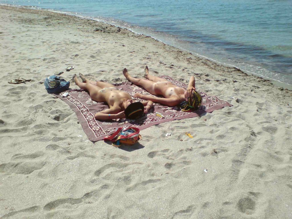 Femmes nues sur une plage publique